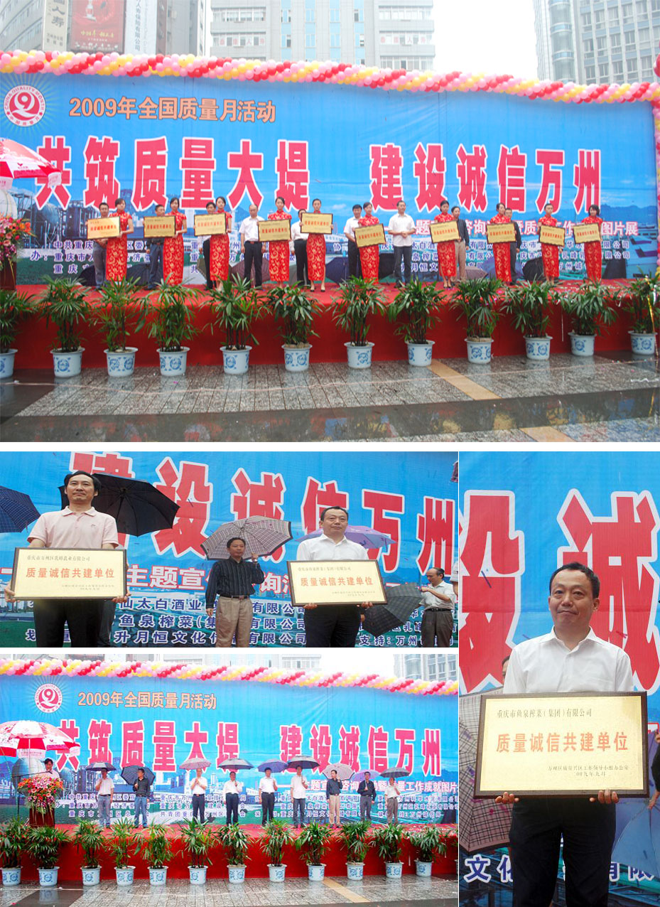 2009年万州区质量月 我司荣获"质量诚信共建单位"