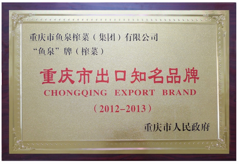 鱼泉牌榨菜荣获重庆市出口知名品牌
