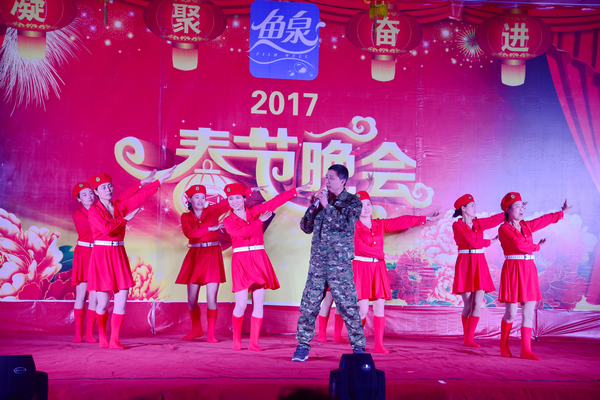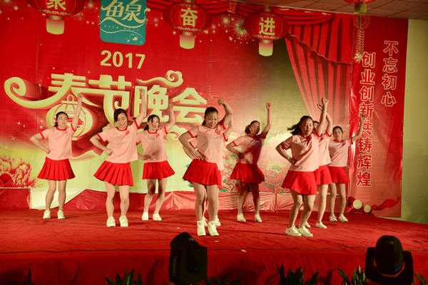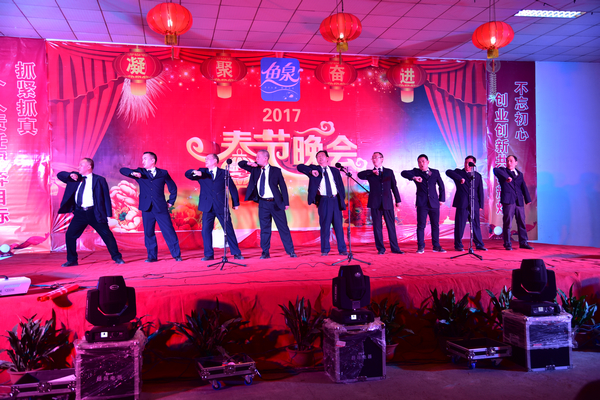 重庆市鱼泉榨菜(集团)有限公司于2017年1月22日举办了一场以“凝聚奋进”为主题的迎春晚会。 龙飞凤舞贺新年,金鸡纳福降人间,值此新春到来之际,公司党委、董事会号召全体员工在新的一年里,团结一心,鼓足干劲,携手前进,向着更高、更远的目标拼搏。全体员工载歌载舞,用一种特别的方式喜迎新春到来和表达鱼泉人内心的希望,尽情展示企业文化和员工的精神风貌。 迎春晚会图片如下: