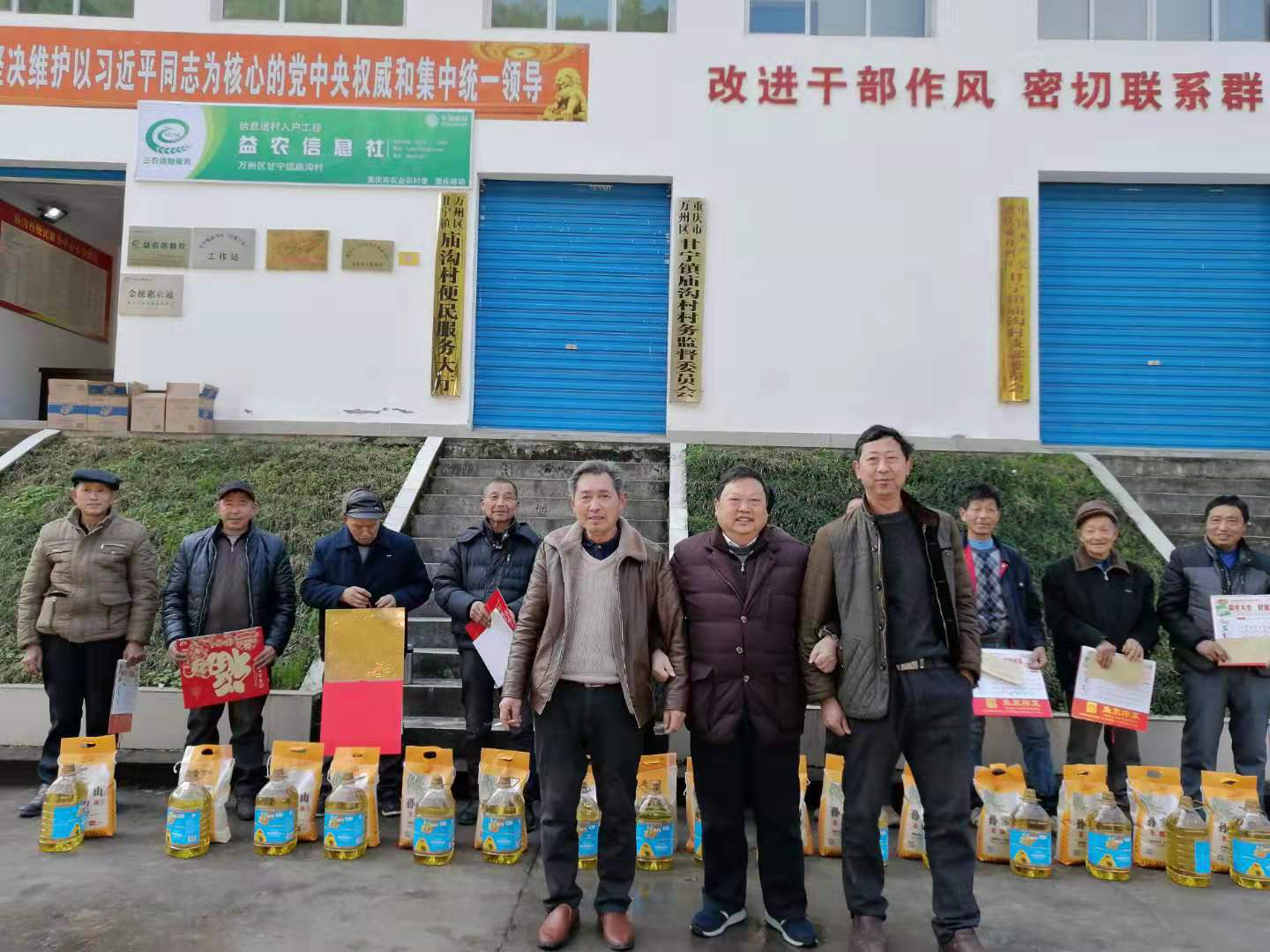 鱼泉公司党委书记到甘宁镇庙沟村,开展结对共建村帮扶慰问图 慰问活动,送去帮扶大米、油、挂历等帮扶物品及慰问金。慰问活动中公司党委书记表示,希望共建村在上级党委政府大力发展榨菜产业助推农业发展的方针下,公司积极与广大群众一道,努力拼搏把榨菜产业做大做强,从而为村民打开致富门路,在第一个百年奋斗目标的收官之年取得可喜成绩。